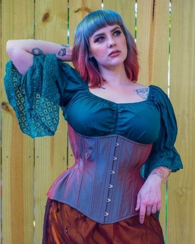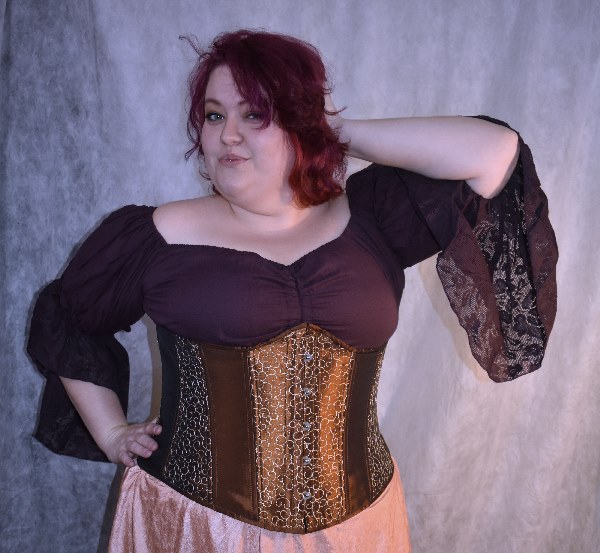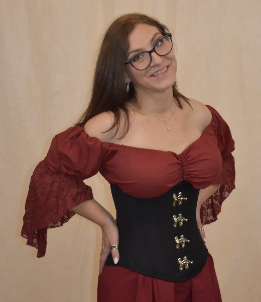 You will find 3 versions of this top in my store.  This one has the addition of lace on the flair of the sleeve that softens the look and gives it that little extra something special. These lovely flowy tops have a cinch on the front that can turn it from a curved neckline to a V-neck in seconds, giving you the ability to be more or less modest depending on your needs.  Made in comfortable, breathable cotton with generous measurements and elastic that is extremely comfortable to wear all day long – even under corsetry. These tops are a great base for many Renaissance and steampunk outfits as well as giving a lovely feminine flair to your favorite pair of jeans.