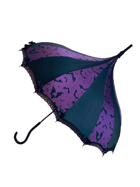 Rain or Shine! These beautiful parasols double as functional umbrellas. They will keep you shady on those bright sunny days and dry on those dark and stormy nights. The retro pagoda shape, hooked handle and lace trim with tiny bows at each point make these umbrellas perfect for a Victorian costume or a fashion accessory that is sure to be admired everywhere you go. Each one is creatively themed, so it may be hard to choose just one!