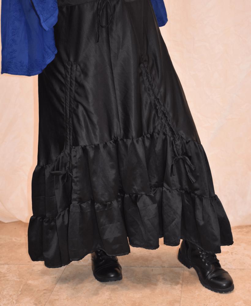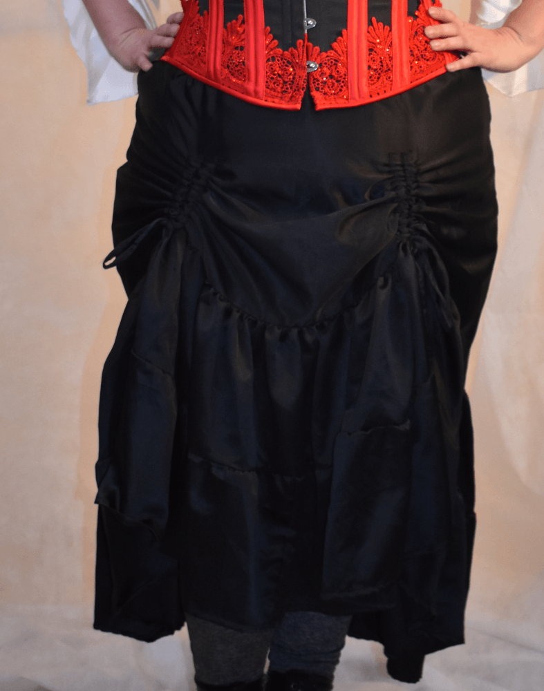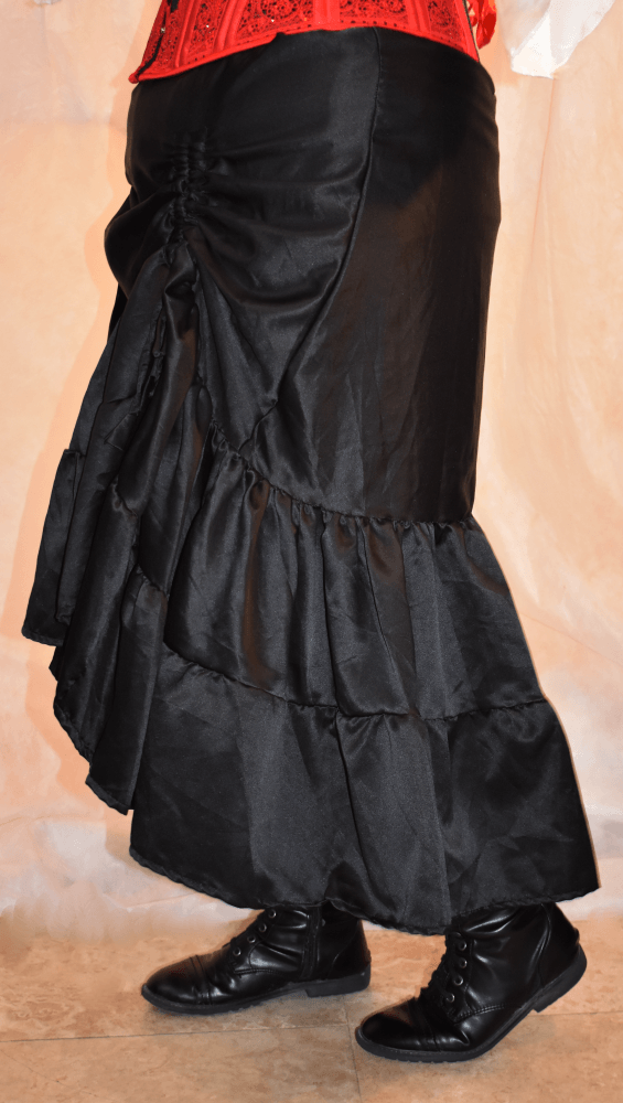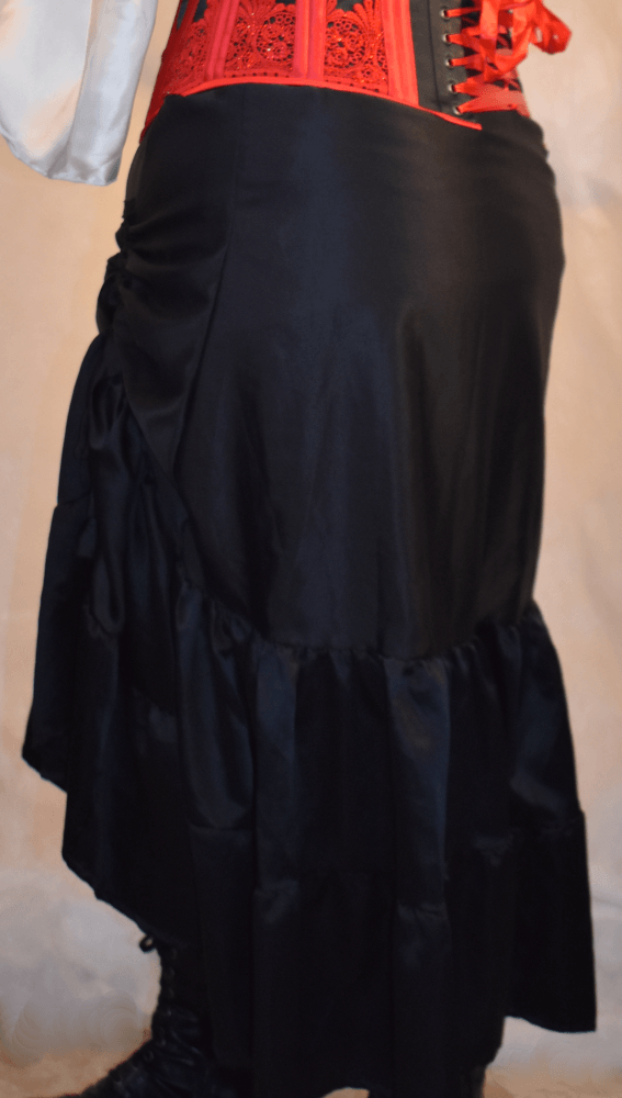 The hi-low/ boot skirts can be layered over another skirt or leggings and work nicely for a steampunk style outfit. These, like my other handmade items, contain an elastic tie at the waist to allow it to fit lots of sizes and adjust as you do.